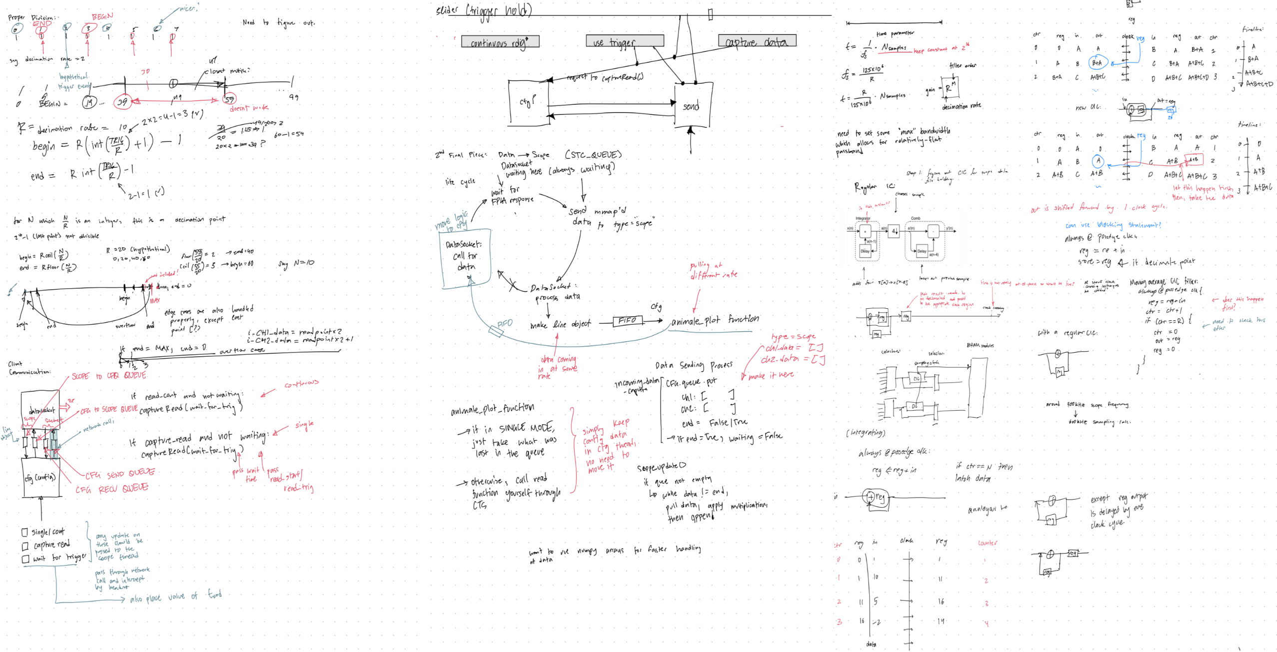 And for designing the server, client, their data sharing, and how the scope will pull data asynchronously while the user can still key in coefficients, we have notes. Lots and lots of notes.