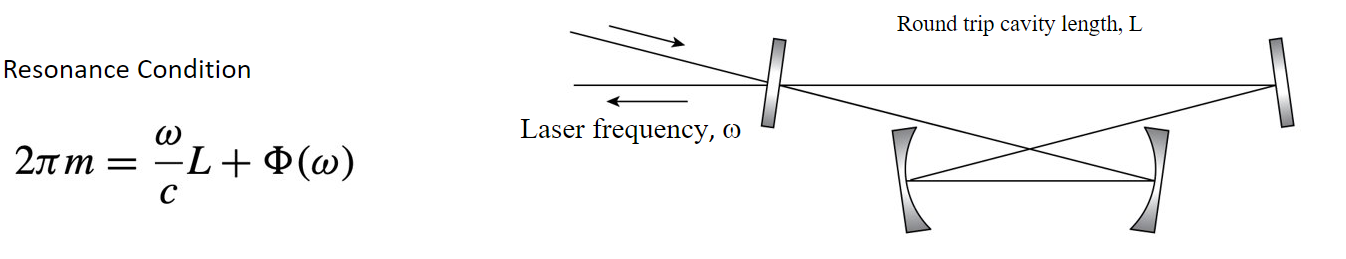 Simply put, if a laser pulse completes a round trip within the cavity exactly when a new incident laser pulse enters the cavity, they will constructively interfere and now the light in the cavity has increased. This is the “resonance condition”, and we often say that the laser is locked in this state.